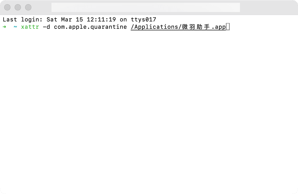 xattr -d com.apple.quarantine /Applications/微羽助手.app