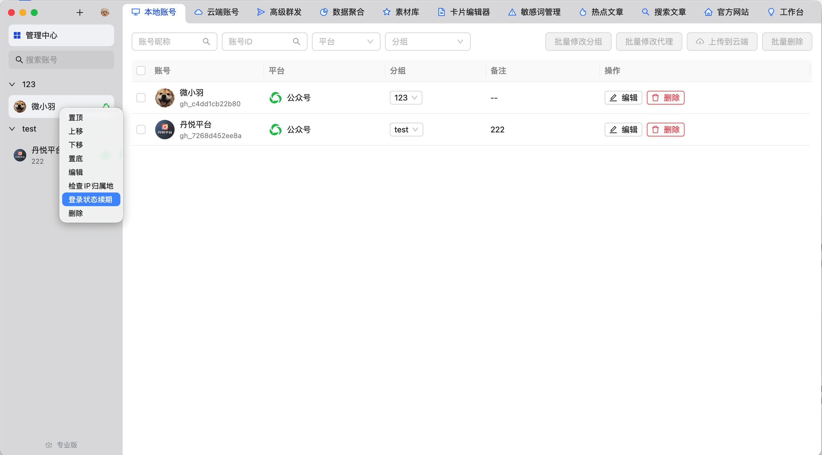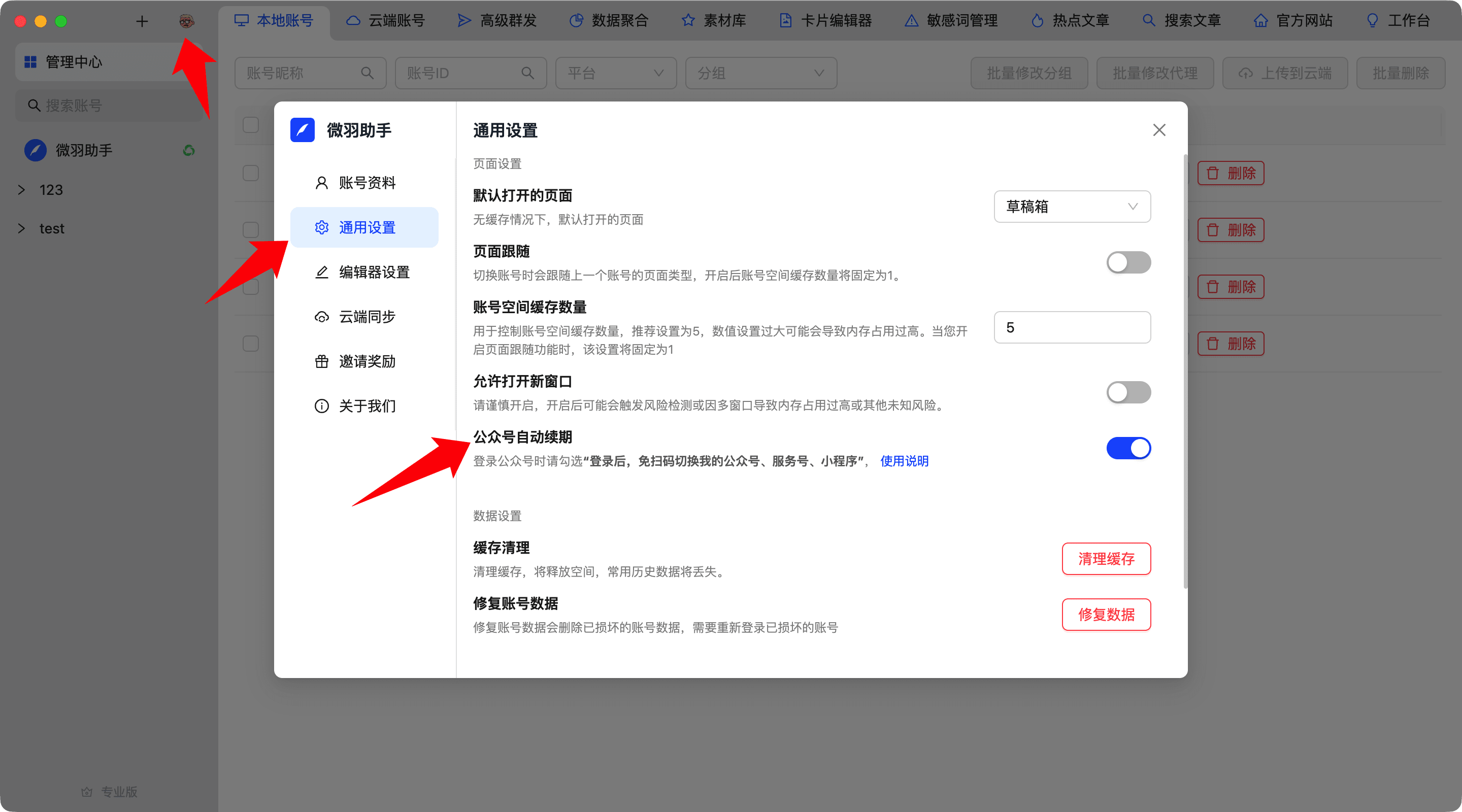 - 我们将在您使用微羽助手时自动续期账号状态,如果超过三天以上未开启微羽助手,将无法延续公众号登录状态